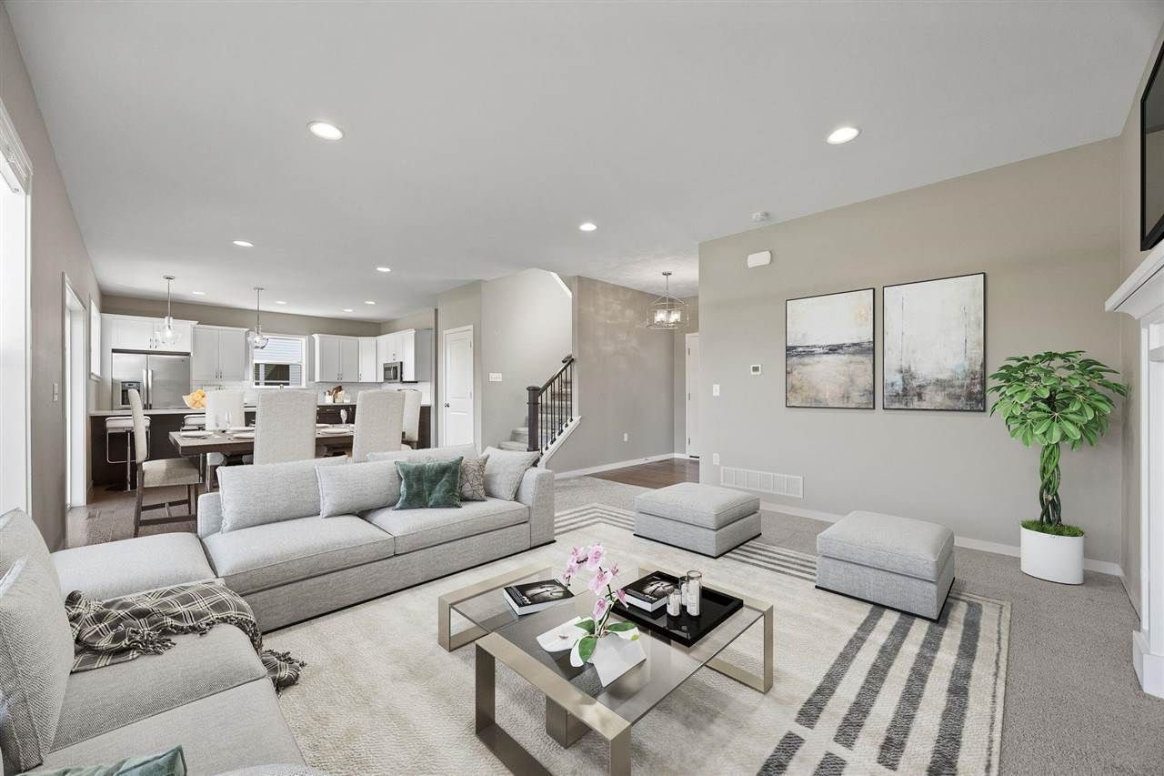 Park views are aplenty in this wonderfully maintained newer 2 story home situated on a beautiful lot in an amazing neighborhood! This floor plan boasts an open main level with tall ceilings, hardwood floors, white trim throughout, huge kitchen with two-tone cabinets, quartz countertops, tile backsplash, long center island with breakfast bar, and pantry. There also is a large dining area, family room with white tiled gas fireplace, separate office perfect for those working at home, full laundry room, and convenient half bath! The upper level has a spacious primary suite with dual vanity and walk in closet, 2nd and 3rd bedrooms and another full bath. The lower level is poised for future expansion and could have a rec/family room, fourth bedroom and yet another full bath! Outside is nicely landscaped and has a large deck overlooking the park and walking trail that weaves throughout town! You'll love all that Mt Vernon has to offer!! * Some photos have been virtually staged.