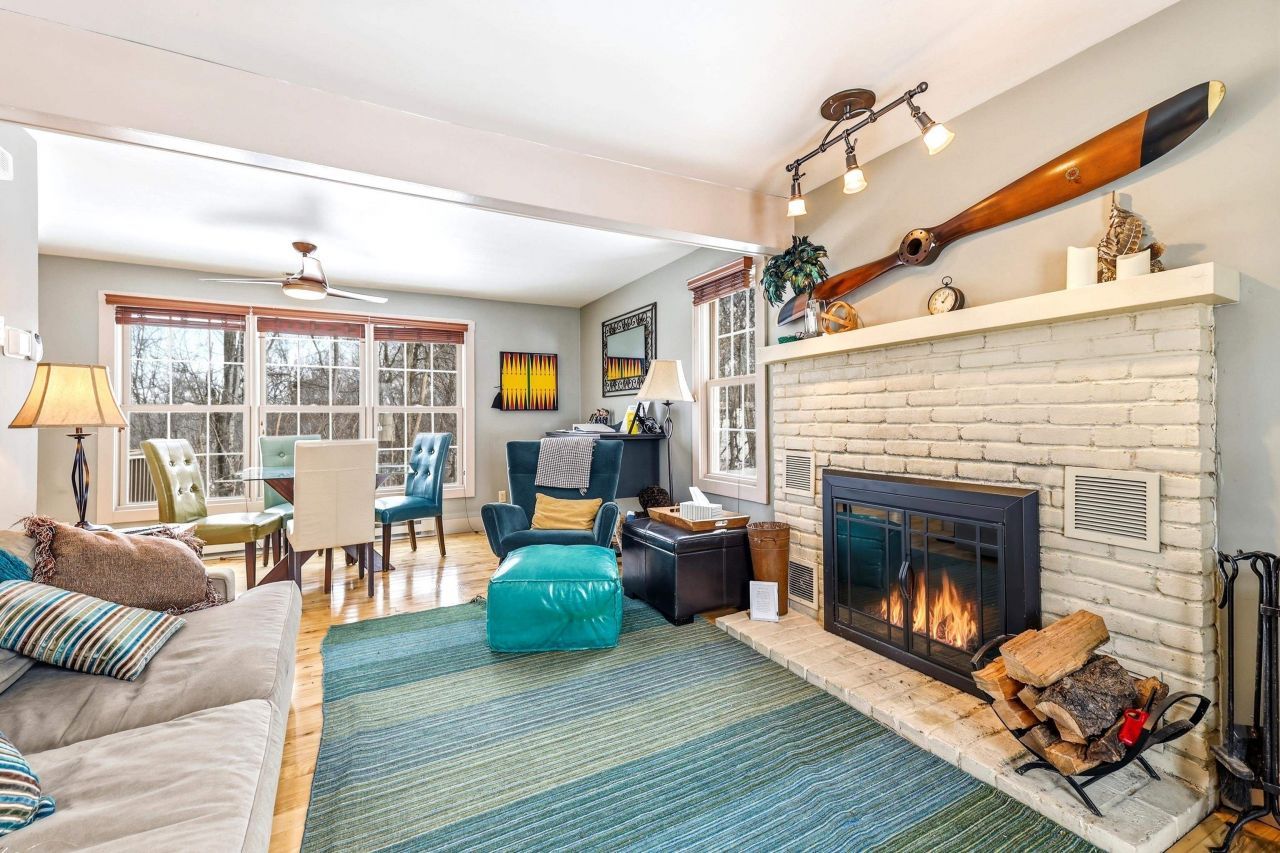 Tucked among the rolling hills and wooded beauty of the Galena Territory, this charming 2-bedroom, 1.5-bathroom Settler-style townhouse at 7 Settler Lane offers the perfect blend of character, comfort, and low-maintenance living with seasonal views of Lake Galena. Inspired by classic Williamsburg design, these townhouses are thoughtfully arranged in clusters and supported by a monthly maintenance program that covers exterior upkeep and grounds, ideal for an effortless weekend escape or rental investment property (yes, this has a rental license). This two-story home features a bedroom on each level, providing flexibility and privacy for owners and guests alike. The open-concept main living area is warm and inviting, highlighted by beautiful birch floors, a cozy wood-burning fireplace, and abundant natural light. The kitchen was tastefully remodeled in 2024, offering modern finishes while maintaining the home's timeless charm. Meticulously maintained and truly move-in ready, recent updates include AC unit, baseboard heat, and thermostats (2022), doors and windows (2014), an added half bath on the lower level (2013), and water heater (2013); over $20,000 of improvements since the current owners purchased it in 2013. Offered mostly furnished (with a few exclusions) and transferred via a separate bill of sale, this property is ready for immediate enjoyment. Whether you're looking for a peaceful full-time residence or a low-maintenance vacation retreat, this home delivers exceptional value in one of Galena's most sought-after communities. Eagle Ridge Townhouse HOA monthly fee of $375.